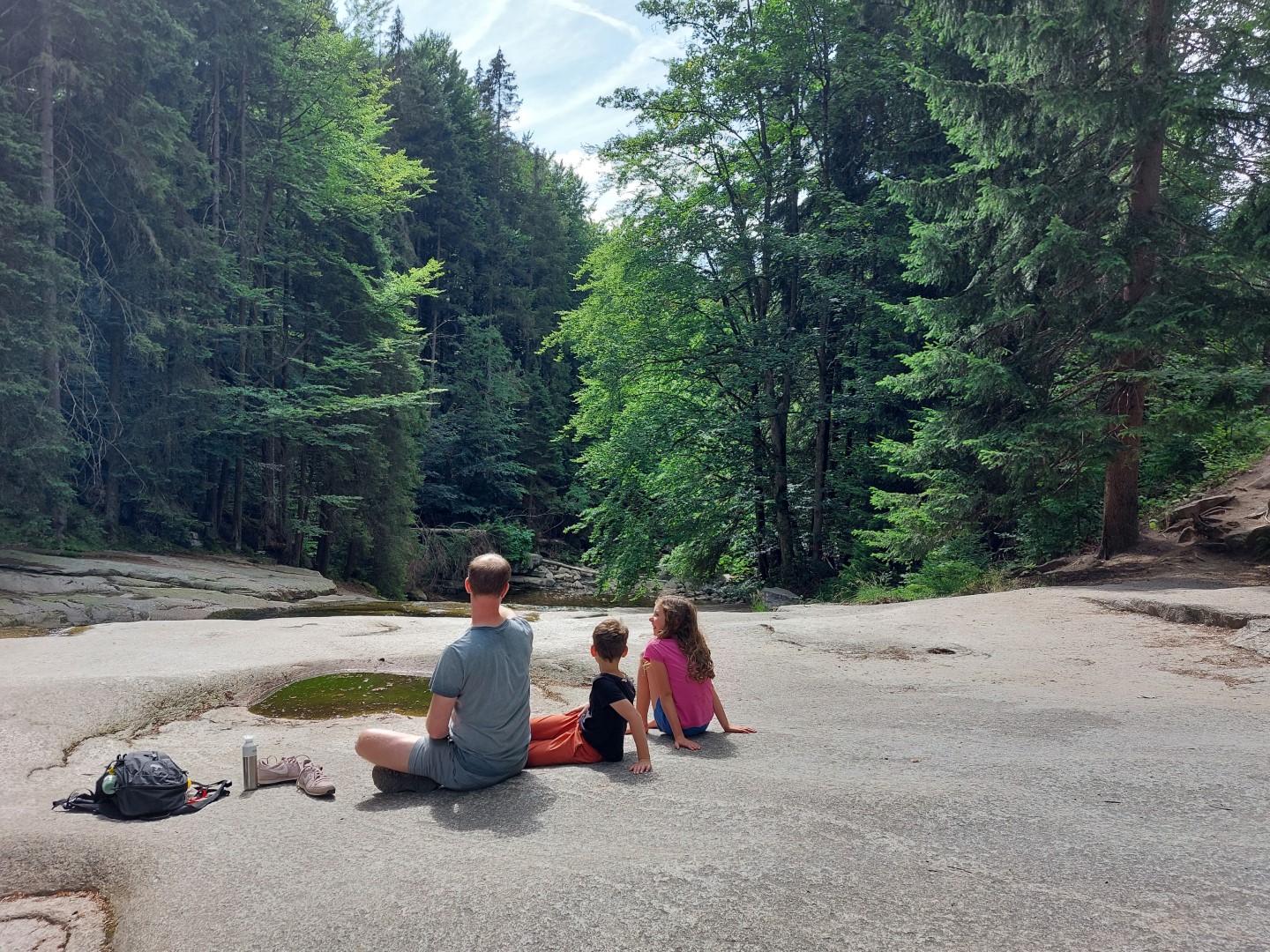 De Mumlava watervallen (Maps) zijn een van de meest bezochte toeristische bezienswaardigheden in dit deel van het Reuzengebergte met kinderen. Er is een wat grotere waterval en er zijn verschillende kleinere watervallen. Er is een houten brug vanaf waar je goed kan uitkijken over deze waterval. Wij vonden het tof om dan door te lopen, stroomopwaarts langs de rivier. Hier wordt het steeds rustiger en het stuk is erg mooi. Je kan op allerlei plekken in de rivier gaan staan, het water is wel erg koud.